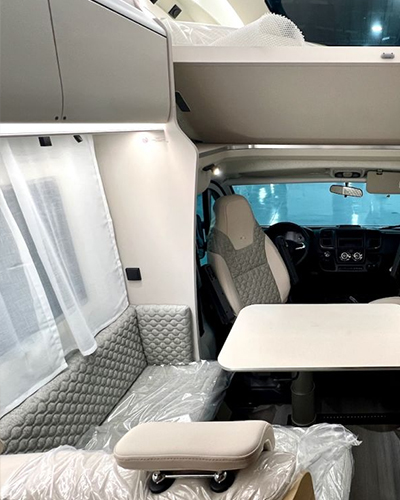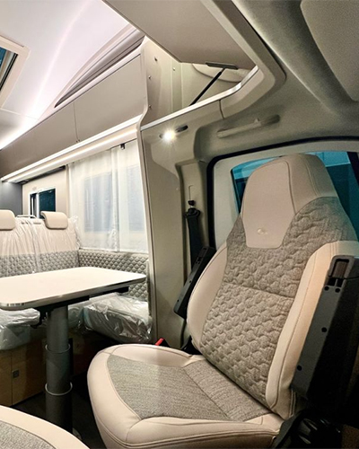 • Asientos conductor y copiloto giratorios convertibles al salón.